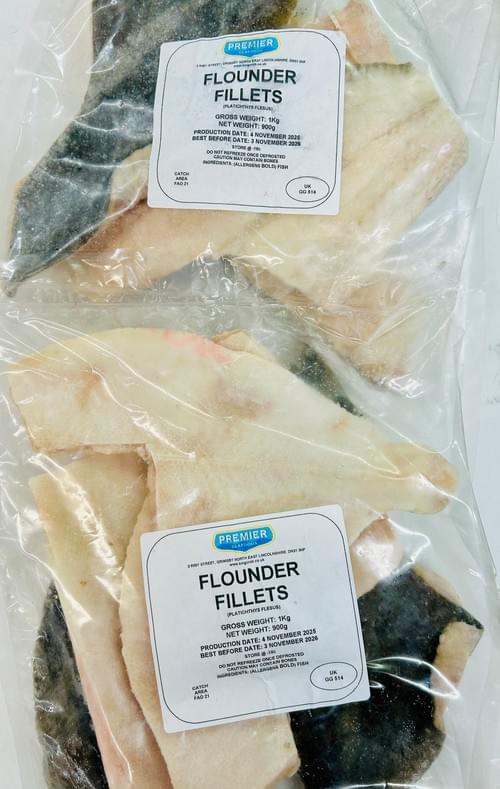 For the first time in our 15 year online history we saw a great landing of flounders on our local market here in Grimsby during November. We bought over one hundred kilo and sold plenty fresh. Although the whole fish are now sold we filleted plenty and blast froze them. Now available in one kilo bags as frozen fillets. Very cheap British fish.QuantityComing soon