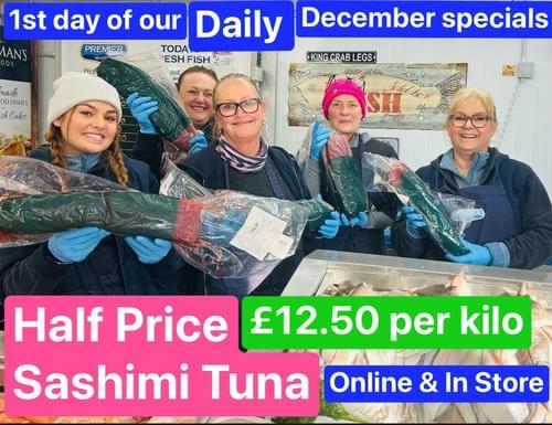 until 6.00am Monday 5th January 2026.From our position here in Grimsby we can offer products to you the retail or trade customer at incredibly good value. We attend the Grimsby Fish Market daily where fish is still sold at a 'shout' auction. The highest bidder wins! Sometimes supply outstrips demand and prices plummet. This is where we can step in and buy fresh fish at low prices. When we do so we send out an email to everybody that has filled in the pop up form on our site. This will make all aware that we have a certain species that we can offer fresh for three to five days at a rock bottom price or that we have bought a lot of fish that we will be blast freezing and selling from our frozen fish section at a great price. We ourselves are inundated weekly from suppliers trying to sell to us. We have a great reputation as a good payer so we are often first call for suppliers trying to get a quick deal on a pallet or two of seafood.